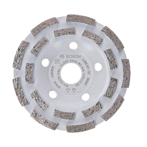 - Com furo de 22,23 mm para esmeris de concreto e esmerilhadeiras angulares com porca de aperto.